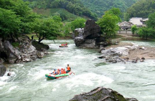 怪潭漂流區(qū)位于秋浦河最上游,是江南最早開發(fā),最長(zhǎng)漂程,最具刺激,最大規(guī)模的漂流區(qū)。怪潭景點(diǎn)很具特色,兩岸綠樹成蔭,怪石嶙立;河道曲折蜿蜒,水流喘急,是十分理想的漂流場(chǎng)所,被游客贊譽(yù)為“皖南第一漂”。