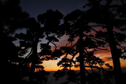 牯牛降峰峰有青松,無(wú)松不奇異,牯牛松漫山遍野,郁郁蔥蔥,樹(shù)冠如華蓋,干枝似虬龍,或怪獸張牙舞爪,或仙女廣袖輕舒,有的游龍走蛇,有的鳳凰展翅,千姿百態(tài),各顯神奇。雖沒(méi)有黃山上的松樹(shù)名氣大,卻比其更多一份天然情趣。那“連理松”本是兩株,日久天長(zhǎng)長(zhǎng)成一體,“在地愿為連理枝”,美好的愿望在這里得到印證;“探海松”長(zhǎng)在危崖之上,主桿挺直,枝椏都曲曲折折探出崖外老遠(yuǎn);在一塊突出的巖石上,一松兀立如同雄鷹,那神情恰似一幅國(guó)畫(huà)鷹石圖;更令人嘆為觀止的是一株長(zhǎng)在大石墩上的千年古松,高不到1米,卻有九枝十八丫,枝丫都長(zhǎng)達(dá)數(shù)米,伸出老遠(yuǎn),枝干長(zhǎng)滿著金黃色的蒼苔,遠(yuǎn)遠(yuǎn)望去,活象一條金甲巨龍盤(pán)于石上,有人名其為“蟠龍松”,甚至認(rèn)為此為天下第一奇松。嘆曰:牯牛降的黃山松姿態(tài)奇特,單株絲毫不遜色于黃山上的名松,而浩瀚的牯牛松林海,卻是黃山所沒(méi)有的。