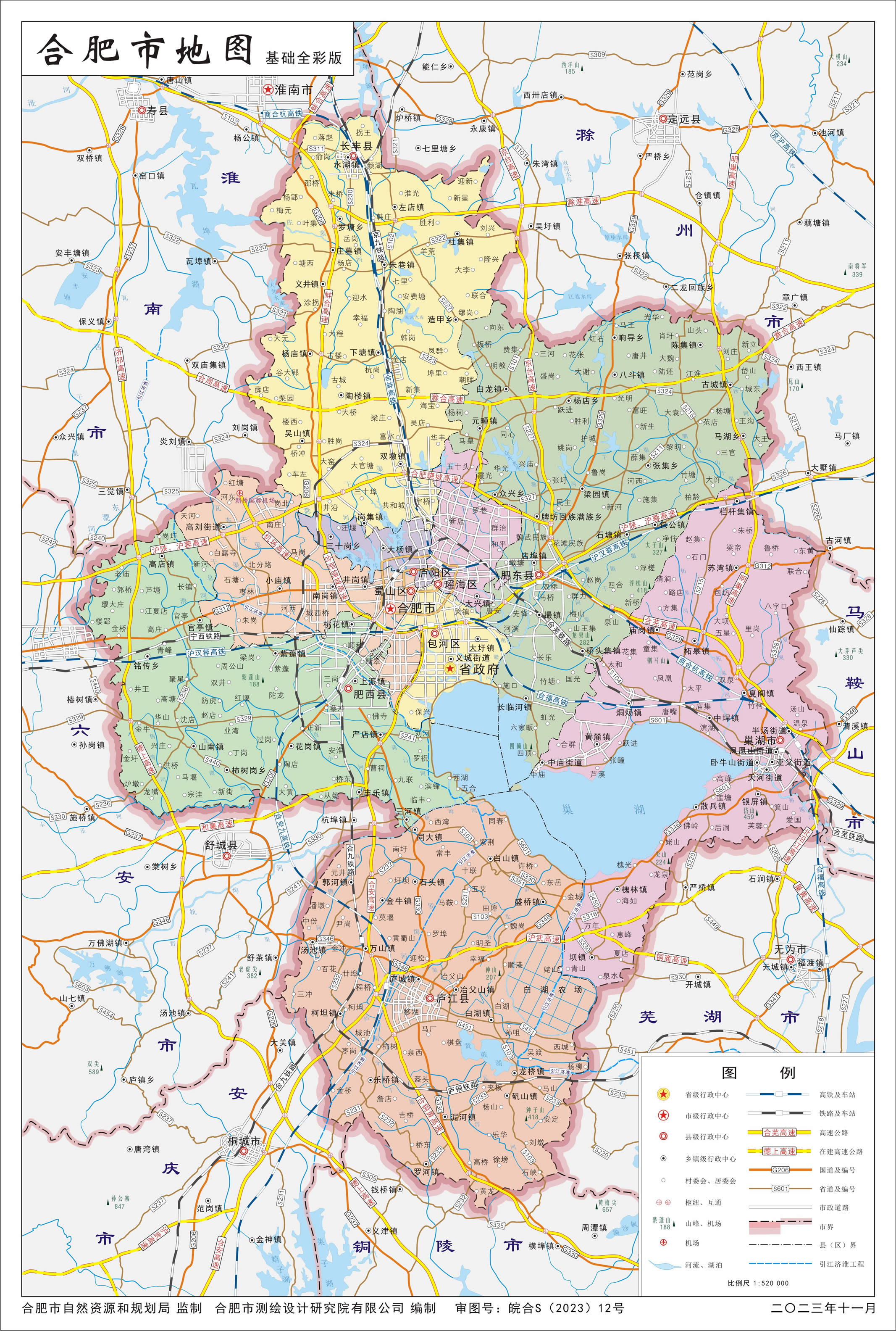 高速公路:合肥繞城高速(G4001),京臺高速(G3),滬陜高速(G40),滬蓉高速(G42),合安高速公路,合淮阜高速公路,蕪合高速(G5011)