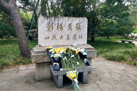 民國(guó)二年(1912年)1月16日由革命黨人黃之萌、張先培、錢鐵如、吳若龍、楊禹昌、羅明典、鄭毓秀等18人組成的暗殺團(tuán)體在北京東華門伺機(jī)刺殺袁世凱,制造了東華門事件,當(dāng)場(chǎng)炸死袁世凱衛(wèi)隊(duì)長(zhǎng)等10余人。革命黨人黃之萌、張先培、楊禹昌等10人被捕并被殺。民國(guó)二年(1912年)2月,南京臨時(shí)政府褒揚(yáng)彭黃張楊四人的革命業(yè)績(jī),追贈(zèng)彭家珍為大將軍,并為彭家珍、楊禹昌、黃芝萌、張先培等四位烈士在農(nóng)事試驗(yàn)場(chǎng)營(yíng)建墓地。整個(gè)墓地呈正八角形,距地面約1米,正中立約8米的紀(jì)念碑,碑上刻“彭、楊、黃、張四烈士墓”。底座的東南、東北、西南、西北各有七級(jí)臺(tái)階通向紀(jì)念碑。四烈士就安葬于正南、北、東、西四面的石冢下,每座墓前均有碑文,記錄烈士事跡,并有中國(guó)國(guó)民黨黨徽裝飾。1966年文革爆發(fā),紅衛(wèi)兵砸毀了飾有青天白日標(biāo)記的四烈士墓,先僅存一塊四烈士墓遺址碑存留。