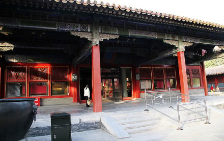 永和宮,內(nèi)廷東六宮之一,位于承乾宮之東、景陽宮之南。明代為妃嬪所居,清代為后妃所居。清康熙帝孝恭仁皇后久居此宮。其后,道光帝靜貴妃,咸豐帝麗貴人等先后在此居住。宮為二進(jìn)院,正門南向,名永和門,前院正殿即永和宮,面闊5間。明間開門,次、梢間皆為檻墻,上安支窗。正間室內(nèi)懸乾隆御題“儀昭淑慎”匾,吊白樘箅子頂棚,方磚墁地。東西有配殿各3間,明間開門,黃琉璃瓦硬山式頂,檐下飾旋子彩畫。東西配殿的北側(cè)皆為耳房,各3間。