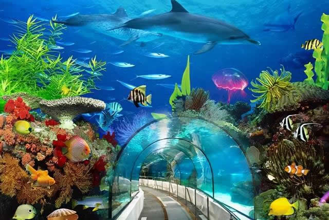 海洋生態(tài)展示——向游人展示海洋生物,包括植物、魚類、海洋哺乳類動物等。