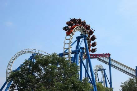 雪域金翅:進(jìn)口懸掛翻滾過山車,在“大俯沖”中鳥瞰大地,在”豎直回環(huán)“中體會(huì)超重,在“眼鏡蛇回環(huán)”中體會(huì)身體翻滾,接下來的是“零重力翻滾”、“側(cè)向盤旋”。