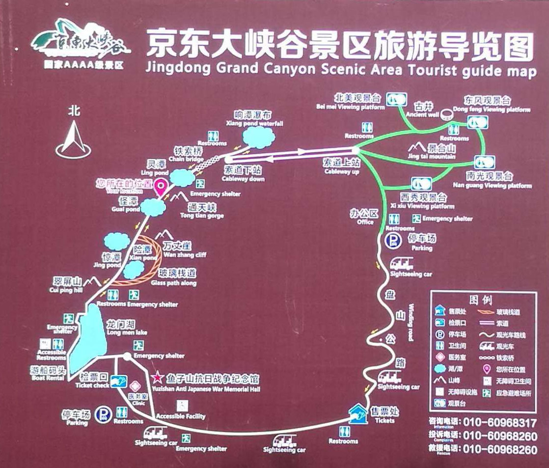 京東大峽谷是是集高山、峽谷、湖面、深潭為一體的綜合型自然風景區(qū)。位于平谷城區(qū)東北的山東莊鎮(zhèn)魚子山民俗旅游村,距市區(qū)(東直門)80公里。 景區(qū)擁有廣闊的湖面、各異的深潭、蔥翠的山野,還有連接大峽谷和井臺山的落差長達千米的高空索道。 京東大峽谷景區(qū)適游期長,景區(qū)四季景致不同,春時山花爛漫,百鳥鳴囀;夏時清風和煦,爽利暢懷;秋時萬山紅遍,層林盡染;冬時冰瀑高懸,銀裝素裹。四季所見所聞所感迥然不同,又各得佳妙,是平谷地區(qū)少見的適宜四季游覽的景區(qū)之一,也是北京地區(qū)少數(shù)適宜冬季觀光的景區(qū)之一。 “空中王子”阿迪力曾在大峽谷景區(qū)上空做“高空鋼絲生存表演”,該表演持續(xù)三天,引起了巨大轟動。表演結(jié)束后,表演所用的鋼絲、保險繩等設備仍留在景區(qū),景區(qū)利用這些設備并加以改進,增加了安全系數(shù),形成了高空走鋼絲項目。既可鍛煉膽識,又可增強自信,不失為一個勇敢者的游戲。