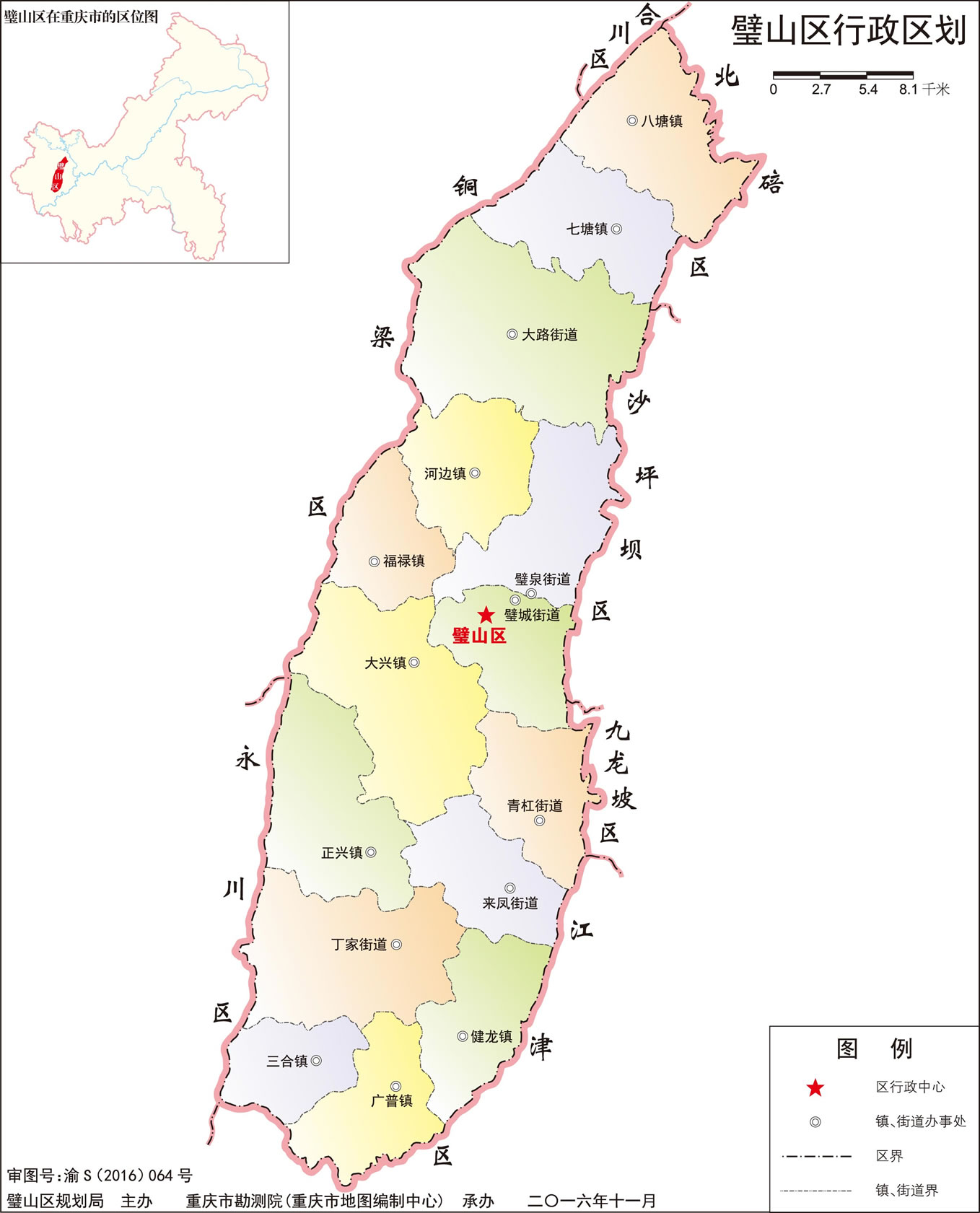 街道;璧城街道、璧泉街道、青杠街道、來鳳街道、丁家街道、大路街道