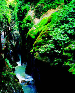 大大小小的泉水順著苔鮮爭相跳躍而下,在陽光的投射下熠熠生輝,讓你想起古人所云:“大珠小珠落玉盤!比嗽趰{中走,水在峽中飛,時隱時現(xiàn)的陽光,飛泉流瀑濺起的水霧,奇形怪狀的石乳形成一片如夢如幻的世界,這浪漫之旅,讓人留連忘返,不忍離去。