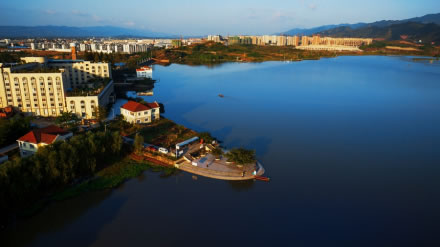 雙桂湖景區(qū)位于雙桂旅游區(qū)內(nèi),距西南佛教祖庭——雙桂堂5公里,因堂得名,距縣城3公里,與渝萬高速及縣城至雙桂堂的旅游公路跨界而過。雙桂湖總面積7365畝,其中水面面積1800畝,水位高程118.3-186.3公頃,長于東西而狹于南北。周圍丘陵低山峰巒起伏,淙淙流水自山澗注入湖中,湖光瀲滟,碧波蕩漾,流金溢彩,嫵媚動人。湖的四周林木蔥茂,自然風光旖旎,恬靜幽雅,給人“碧水共藍天一色,落霞與歸鳥齊飛”的感覺,為久居喧囂城市的人們提供了一個理想的旅游觀光、休閑度假、消夏避暑的勝地,是人們追求回歸自然及鄉(xiāng)野情緒、放松愉悅之場所。