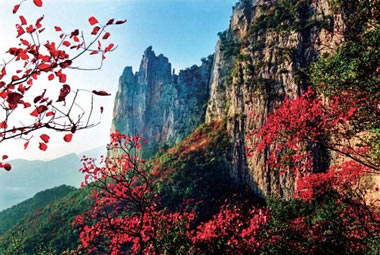 景區(qū)內有集中連片紅葉6700公頃,有以黃櫨、烏桕、楓樹和桐樹為主的200個品種。紅葉植物主要生長在樹木少、土質薄的地方,具有耐寒、耐干旱的特性,早晚溫差越大,天氣越冷紅葉越紅。深秋時節(jié),廣袤的群山峽谷中,70%的山體上都被成片的紅色覆蓋,與碧綠的峽江水交相輝映。