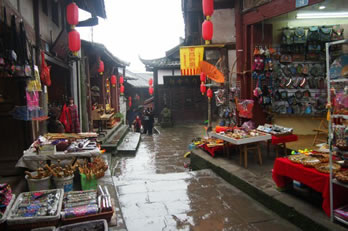 十八梯,因此處梯坎有十八級臺階而得名。從前,此處曾是商賈云集,各種行幫勢利相互傾軋之地。幾百年來,老街雖經多次修整,但十八梯仍保持原貌,因而成為古鎮(zhèn)滄海桑田的見證。