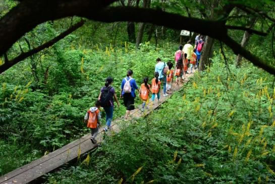 主要針對親子和研學(xué)開展的森林體驗項目,長度1.5公里,沿線設(shè)13個自然教學(xué)點。如自然擺動、聆聽自然的聲音、釋放手和腳、童話森林、動物的足跡、松鼠之家等,并設(shè)有休息區(qū)。