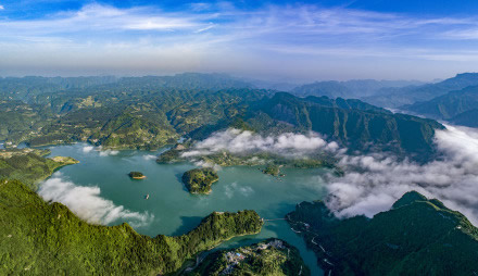 重慶黔江小南海國家地質(zhì)公園,位于重慶市黔江區(qū)小南海鎮(zhèn)南海村,重慶與湖北交界處,距黔江城北部30余千米。是一個(gè)融山、海、島、峽諸風(fēng)光于一體的高山淡水湮(堰)塞湖泊,也是中國國內(nèi)迄今保存最完整的一處古地震遺址。