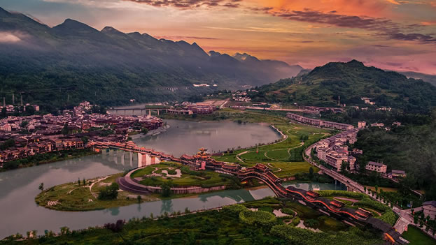 整座濯水風雨廊橋,不僅為世界第一長度的廊橋,在形態(tài)上、結構上、工藝上實現(xiàn)了傳統(tǒng)與現(xiàn)代的結合,中式與歐式的結合,東方建筑美學與西方建筑美學的結合,更是傳統(tǒng)木質廊橋與使用膠合木和鋼架相結合的全新的結構方式,實現(xiàn)了建筑上新的探索和嘗試。