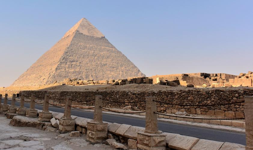 胡夫金字塔 胡夫金字塔位于埃及首都開羅西南約10公里的吉薩高地。胡夫金字塔是埃及現(xiàn)存規(guī)模最大的金字塔,又稱吉薩大金字塔,是古埃及第四王朝的法老胡夫的金字塔,主要作為其陵墓,也是世界上最大、最高的埃及式金字塔。約建于前2580年,完工于前2560年。位于吉薩金字塔群的中央一座,也是最為高大的,被喻為“世界古代八大奇跡”之一。 在埃及境內(nèi)已發(fā)現(xiàn)的110座金字塔中,吉薩高地的祖孫三代金字塔——胡夫金字塔、海夫拉金字塔和門卡烏拉金字塔是最古老的金字塔。 金字塔,形狀像“金”字,它是一種方底尖頂?shù)氖鼋ㄖ,是古代埃及埋葬國王、王后或王室其他成員的陵墓。它既不是金子做的,也不是我們通常所見的寶塔形。是由于它規(guī)模宏大,從四面看都呈等腰三角形,很像漢語中的"金"字,故中文形象地把它翻譯為"金字塔"。