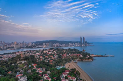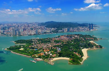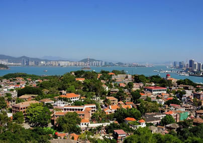 鼓浪嶼位于福建省廈門市思明區(qū)鼓浪嶼街道,面積1.88平方公里,與廈門島隔海相望,至高點為日光巖,與廈門島上的廈門世茂海峽大廈、廈門大學等隔海相望。