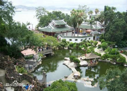 坐落在鼓浪嶼港仔后,建于民國二年(1913年),主人林永嘉,又名叔臧,園名即以他的名字諧音而命名。甲午戰(zhàn)爭清廷失敗,翌年割臺灣給日本,林維源及其子叔臧不愿當亡國奴,遷到鼓浪嶼居住。其后,叔臧建了這座花園。菽莊花園總面積20328平方米,其中水域3352平方米,建筑物2451平方米。
