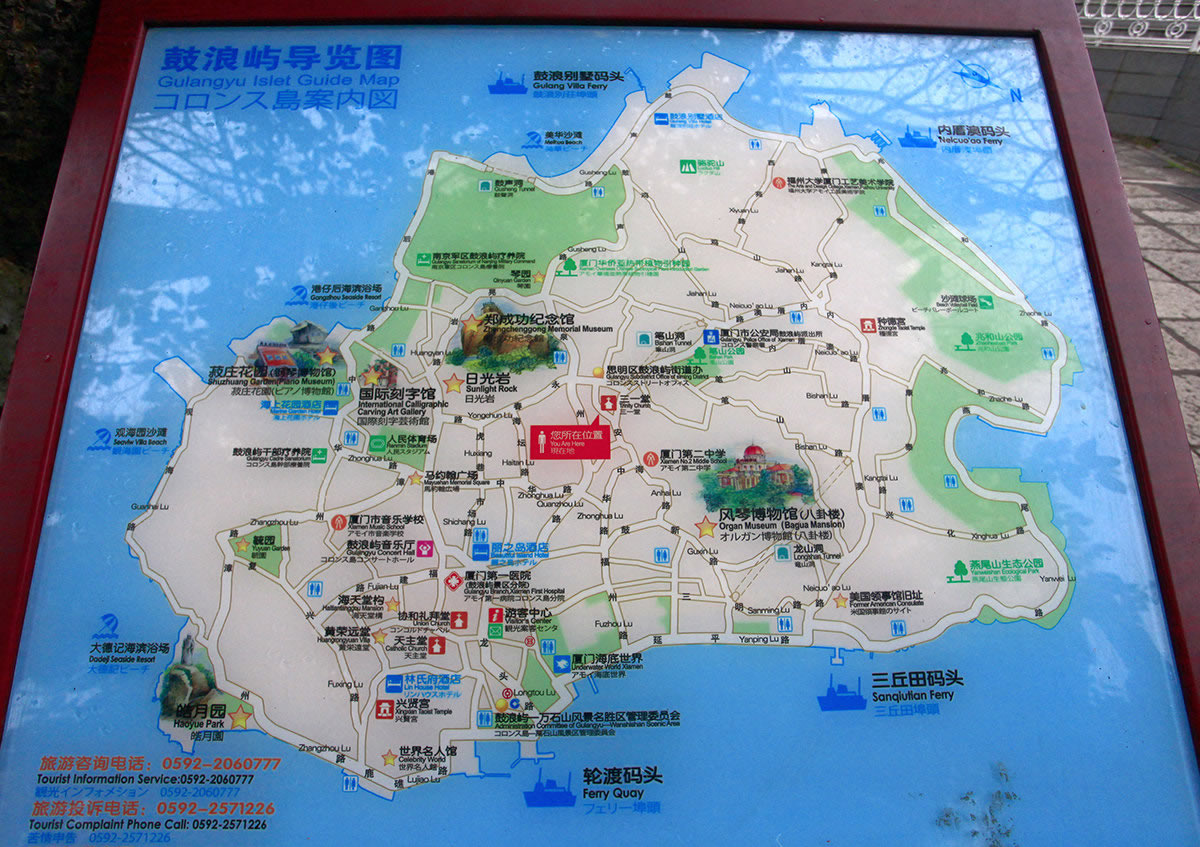 路線2:輪渡碼頭一三丘田碼頭一沙灘球場、工藝美術學院一鼓浪別墅一菽莊花園一輪渡碼頭。