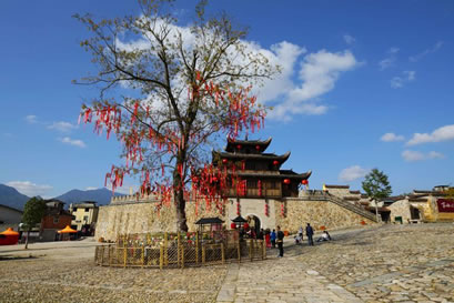 和平古鎮(zhèn)現(xiàn)存東北兩座譙樓。東門譙樓是三重檐歇山式,而其他三座譙均是兩重檐的。東門譙樓,門洞用石條砌成,墻體用大塊的卵石筑成。城墻腳下的這塊“禁止搬運(yùn)、保固地方”的石頭,是和平“舊市三禁碑”之一,為清代設(shè)立。由于當(dāng)時(shí)社會(huì)地主少、農(nóng)民多,農(nóng)民每次把收成的大部分上交給地主,在青黃不接的時(shí)候,糧價(jià)上漲,地主就把大部分的糧食外運(yùn)到邵武城關(guān)或福州,造成產(chǎn)糧地變?yōu)槿奔Z地,農(nóng)民面臨饑餓的威脅,因而設(shè)此碑,并輪流放哨,規(guī)定所有私自外運(yùn)的糧食都必須沒收或低價(jià)收購,因而它起到維護(hù)當(dāng)時(shí)的糧食市場的作用。北門譙樓,當(dāng)?shù)厝朔Q“武陽樓”,因它對面的山叫武陽山,清同治年間翻修過。城門的門洞用條石砌成,比東門門洞高大。城門兩邊各保留了一段用鵝卵石筑成的明城墻,鵝卵石上長滿青苔,漫漶的縫隙間長著青青野草,四季皆有野花開放,充滿了詩情畫意。風(fēng)雨譙樓,見證百年夕陽煙雨;古樸城門,迎送多少古鎮(zhèn)喜憂。譙樓走過的是悠悠歲月,形容雖然殘破斑駁,留下的卻是耐人尋味的古鎮(zhèn)歷史。