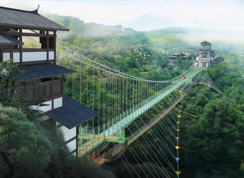 離地200米,全長(zhǎng)300米,上層是(全透明玻璃無豎杠+10D全息特效)構(gòu)造橋面,除了比普通玻璃天橋恐怖10000倍,“深海巨鯊、彎彎曲曲的羊腸小道”等3D特效與“走一步碎一片玻璃”的全息碎裂效果令人提心吊膽;下層是步步驚心高空極限挑戰(zhàn)項(xiàng)目。
