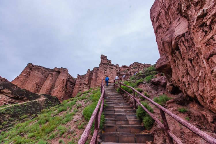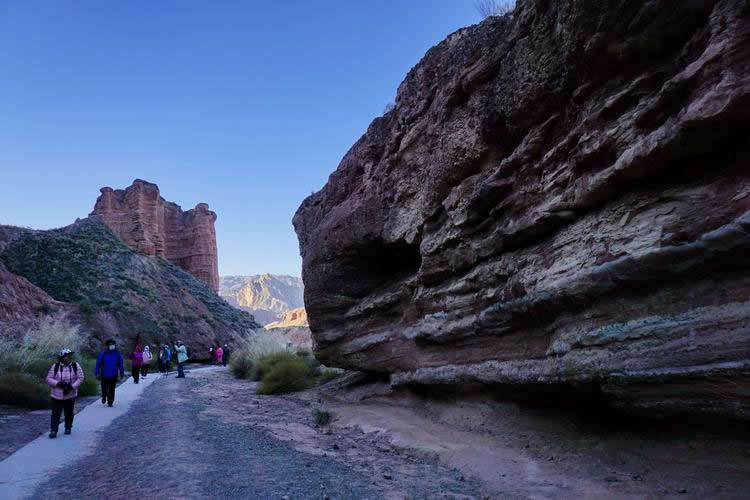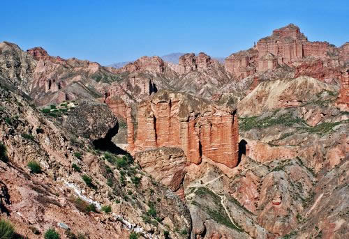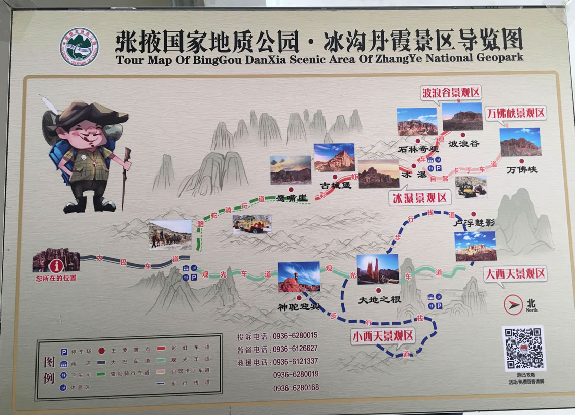 小西天景區(qū)位于冰溝景區(qū)的東部,主要景觀為一條滿布丹武地貌的山溝,均為長約800米的山體游步道,游覽時間大約60分鐘。主要景點有神駝迎賓、紅層地貌、泥瀑布、泥鐘乳、泥葡萄、桃園結(jié)義(新娘出嫁、樓蘭商駝、千里相會)、玄武門(龜蛇鎖江)、紅纓帽(裕固族帽子)、陰陽柱(大地之根)、石雞(筆架峰)、七女峰(侍女拜佛)、僧人崖、金蟾拜佛、大佛石等,最有名氣的有神駝迎賓、桃園三結(jié)義、玄武門、蘑菇石、大地之根、七女峰、望夫石等景觀。
