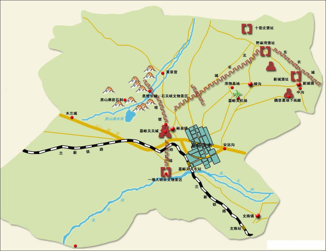 火車站:嘉峪關(guān)站、嘉峪關(guān)南站、綠化站