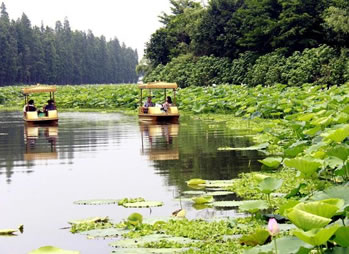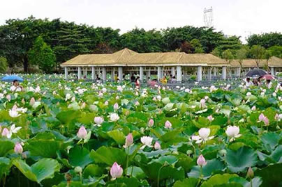荷花園內(nèi)可觀賞到480個珍稀的荷花品種,其中有太空培育的“太空蓮”、遼寧省出土的 “古代蓮”等珍稀品種,數(shù)十個睡蓮品種,包括從臺灣引進的四季花開的既可觀賞又可食用,同時還有較高的藥用價值的香睡蓮品種,以及各種罕有的水生植物。還有直徑達1.98米,可以承重40公斤的王蓮、以及形態(tài)萬千的數(shù)百個水生花卉品種。更種植了近100種各式各樣的奇瓜異果,更有直徑60公分,重達85公斤的巨型大南瓜、開花機率僅為十萬分之一的“并蒂蓮”奇觀,每年均數(shù)次競放荷花世界爭妍斗麗。并按個同功能劃分八大區(qū):文化廣場、中心 區(qū)、品種觀賞區(qū)、王蓮和睡蓮區(qū)、飲食娛樂區(qū)、生產(chǎn)科研育種區(qū)、籽 蓮區(qū)等組成。您可以乘車或徒步游覽景區(qū),也可以蕩舟在荷花叢中, 采摘蓮于、蓮藕,別有一番情趣。