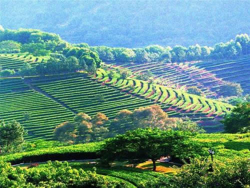 雁南飛茶田是飽蘸著祖國(guó)茶文化,在青山綠水間濃墨重彩揮灑而就的融茶葉生產(chǎn)、加工與旅游、度假于一體的山區(qū)“三高農(nóng)業(yè)”、“生態(tài)農(nóng)業(yè)”、“旅游農(nóng)業(yè)”的開放型旅游景區(qū),被譽(yù)為“現(xiàn)代農(nóng)業(yè)開發(fā)的成功范例”,梅州“三高農(nóng)業(yè)”開展的一個(gè)樣板和典范。雁南飛茶田在茶葉種植的同時(shí)結(jié)合了果樹的種植和園林綠化,大片的茶樹與龍眼、荔枝、芒果、枇杷等南國(guó)佳果、各式園林綠化景點(diǎn)相隔其中競(jìng)相媲美。雁南飛茶田在科學(xué)種植的同時(shí),采用傳統(tǒng)工藝結(jié)合現(xiàn)代高新技術(shù),精制出有獨(dú)特自然香型的雁南飛高級(jí)系列茗茶,并賦于濃厚的文化內(nèi)涵和高附加值,創(chuàng)造了名牌精品。雁南飛茗茶主要有:金單叢烏龍茶、自然香烏龍茶、金桂蘭烏龍茶、人參烏龍茶、金觀音烏龍茶、桂花烏龍茶,此外還有特制的茉莉花綠茶、映山紅紅茶等品種,適合不同品味的人士品茗。