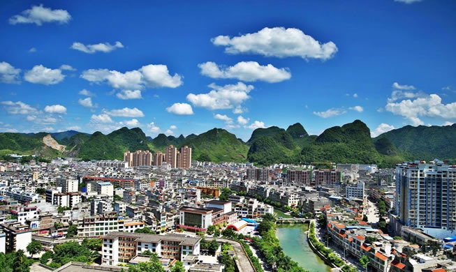 位置境域 德保縣位于廣西壯族自治區(qū)百色市東南部,屬亞熱帶地區(qū),全縣總面積2575平方千米。東部與田東縣相連,西南部和靖西市接壤,北部與田陽區(qū)、百色市相毗鄰,西南面靠近越南社會主義共和國?h城距自治區(qū)首府南寧市263千米,距百色市人民政府駐地129千米?h境東西最大橫距54.8千米,南北最大縱距41.68千米。