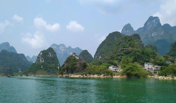 浩坤湖,位于百色市凌云縣下甲鎮(zhèn)和伶站鄉(xiāng)交界的地域,是澄碧河水系堵洞而成的湖,湖長6公里,湖寬50至1500米。豐水期湖面面積約20平方公里。 浩坤湖發(fā)源于青龍山的澄碧河是珠江源之一,澄碧河水自水源洞噴流而出,先在洞口盤根錯節(jié)的千年古榕下聚成一彎綠瑩瑩的湖,再流穿過凌云縣城中心曲曲折折地流出城外去。澄碧河穿過泗城,流經(jīng)一個叫下甲的地方,在彩架鉆入地下,潛行5公里后在弄盤露出地面,河水流經(jīng)下甲弄盤至伶站浩坤一帶受阻而成湖,這就是浩坤湖。 浩坤湖是凌云這高山林立的地方最大的一片水面,古時叫東湖, 俗稱高山神湖。湖山秀美、岸線曲折,島渚星羅,幾十座山峰緊緊挾攜著一湖碧水,湖內(nèi)島嶼交錯,水天一色,兩岸山奇崖秀:巨龍入地,掌上明珠、情蛙對語、望子牧歸、雞犬相聞、神駝昂首、相思夢縈,岸上花艷竹翠,藍天青山倒映水中,山水天渾然一體,令人陶醉,湖面寬闊,水質(zhì)清澈,自然風光十分優(yōu)美,岸畔竹影婆娑,釣翁頻現(xiàn),花樹掩映,黃髫小兒戲水,馬兒羊羔撒歡,老牛吃著嫩草,一派溫馨和諧、天人合一景象,是美麗南方中一片難得的自然景觀。具有良好的水上觀光、度假旅游的自然地貌基礎(chǔ)。