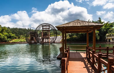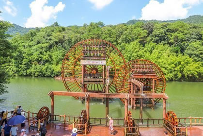 位于八寨溝景區(qū)大門(mén)外,是一個(gè)人工湖,湖面寬廣,三面環(huán)山,景色秀麗,可乘木船游覽龍珠湖風(fēng)光,混凝土大壩外有人工瀑布,瀑布下面是深水潭,有一架仿古大水車,在流水驅(qū)動(dòng)下不停轉(zhuǎn)動(dòng)。