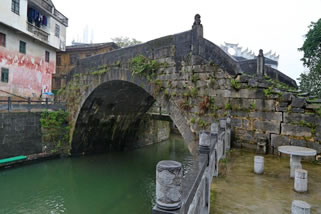 石板路旁的房子多為青磚、青瓦的兩層明清建筑,歷史滄桑隨處可見。每棟房子設(shè)計(jì)十分合理,集商住于一身,均由門前、天井、正房、廂房、后院組成。靠街的一般作鋪面從事商業(yè),有樓梯可上二層。往里走是天井,一般都栽有花草,利于采光;天井后是正房,高大寬敞,供著神像及祖宗牌位,是主人活動(dòng)、會(huì)客的地方;兩邊是用來居住的廂房。正房、廂房的門窗上都雕有花紋;正房后有門可到后院,后院臨江并建廚房和廁所,有石階可到江邊取水、洗衣。到大圩,萬壽橋是必去的地方。萬壽橋詩建于明代,是一座石塊砌起的石拱橋,橋面的石頭已被磨得溜光發(fā)亮,間雜些許小草,古樸自然。橋的西面是漓江,是欣賞漓江及對(duì)岸螺螄山的極佳位置。