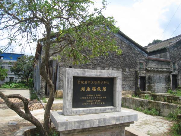 劉永福故居其中一處位于那良鎮(zhèn)圩邊的那營(yíng)村。建于清光緒二年(1876年)。主建筑為磚木結(jié)構(gòu),二進(jìn)十間房屋,中有天井,兩側(cè)為廂房,有回廊相通,屋檐以琉璃瓦裝飾,是一座典雅古樸的建筑。