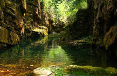 在虹橋之上約100余米。峽長(zhǎng)40米,兩旁峭壁高聳,中間一條小路,僅容1人通過。峽中習(xí)習(xí)生風(fēng),仰首只見藍(lán)天一線,因此又叫“一線天”。民間傳說,有緣份的人往往可以在在這里和神仙相會(huì)。長(zhǎng)峽南端入口處石壁上,刻有寬能法師題寫的“神仙峽”三個(gè)大字。原來,會(huì)仙峽又叫神仙峽。