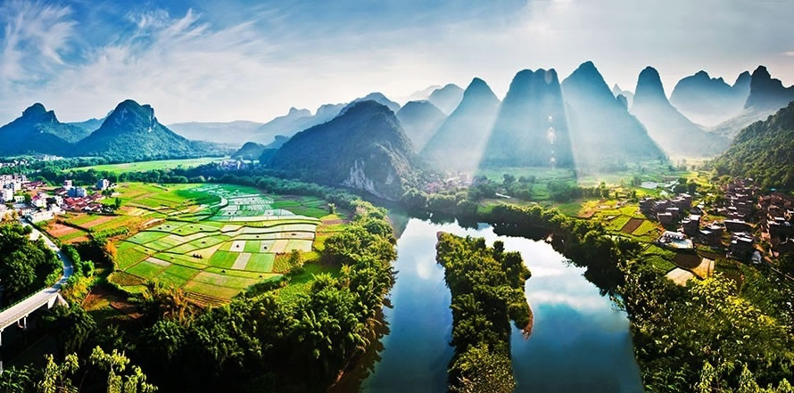 古龍河景區(qū),位于廣西宜州祥貝鄉(xiāng)古龍村,這里是廣西最后的山水凈土,有“世外仙境”的美譽(yù),是國家AAA級景區(qū)、中國最美意境旅游景區(qū)。古龍河山清水秀,竹翠峰美,游客乘坐竹筏順?biāo),可以觀賞到中國最大的壯族水車,體驗(yàn)到魚鷹捕魚、江中漁韻的詩情畫意,欣賞到壯族古老的圖騰巖畫,感受到最有民俗特色的壯族情歌。在當(dāng)?shù)亓鱾髦?ldquo;桂林山水甲天下,古龍山水賽桂林”的說法。