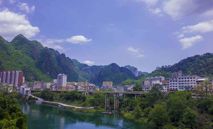 天峨縣,隸屬廣西壯族自治區(qū)河池市,位于廣西壯族自治區(qū)西北部,紅水河上游?h境東西長約77千米,南北寬約95千米?偯娣e3196平方千米。天峨縣是國家、廣西林業(yè)重點縣,全縣森林面積22.9萬公頃,森林覆蓋率達(dá)82.6%,素有“森林王國”“綠色寶庫”之稱,野生植動物資源種類繁多;紅水河流經(jīng)縣境112千米,水資源占紅水河流域總蘊藏量45%。全縣轄2鎮(zhèn)7鄉(xiāng),其中瑤族鄉(xiāng)1個,居住著壯、漢、瑤、侗、苗、毛南、布依、仫佬、水等20個民族。天峨縣常住人口為143155人。