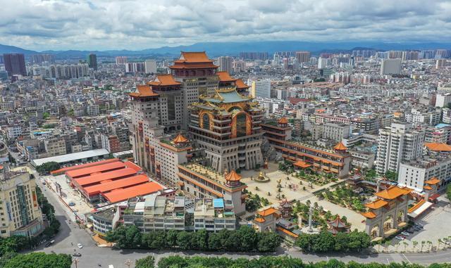 云天文化城又稱云天宮,位于玉林市江濱路,南流江畔。是一座以濃縮中國(guó)古今傳統(tǒng)文化和著名建筑風(fēng)格為一體的巨型仿古宮殿式建筑。占地面積為14萬(wàn)平方米,主體建筑高21層共108米。云天文化城以石雕、木雕、鑄銅三大系列藝術(shù)性的呈現(xiàn)中華名族的歷史文化,以創(chuàng)新的手法為中國(guó)上下五千年的文化做傳承。點(diǎn)睛之作是六樓閣樓高30米,重達(dá)600噸用1千多片銅片組成的硫金鑄銅工藝品“皆大歡喜”。