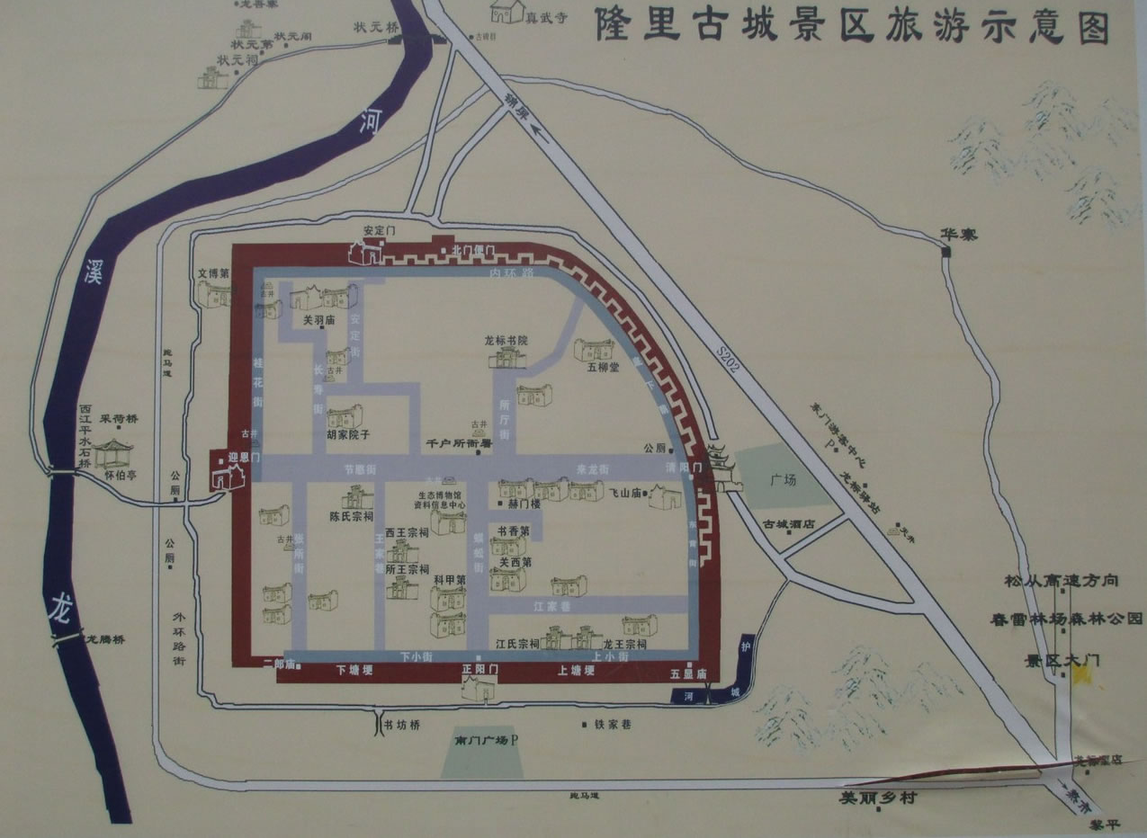 一日游:東門古城——龍標(biāo)書(shū)院——觀音堂——蜈蚣街——王氏宗祠——西門鼓樓——北門街——古城墻——陶家大院——東門鼓樓 |