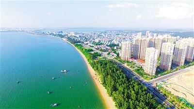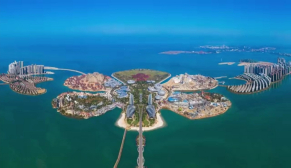中國海南;◢u位于排浦港與洋浦港之間的海灣區(qū)域,南起排浦鎮(zhèn),北至白馬井鎮(zhèn),距離海岸大于600米,總跨度約6.8千米。由三個(gè)獨(dú)立的離岸式島嶼組成,規(guī)劃填海面積約8平方千米,規(guī)劃平面形態(tài)為盛開在海中的三朵花,故人工島取名為“海花島”。