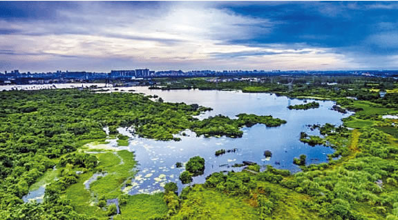?谖逶春訃覞竦毓珗@,南起永莊水庫,北至五源河河口海域,主要包括永莊水庫、五源河及河口海域3個濕地單元,規(guī)劃面積1300公頃(1.95萬畝),其中濕地面積958公頃(1.44萬畝),有4個濕地類及10個濕地型,濕地率為73.69%。公園內(nèi)共有野生維管束植物96科318屬427種,其中水蕨為國家二級保護植物。共有野生脊椎動物25目66科154種,其中國家Ⅱ級重點保護野生動物多達11種。五源河上游的永莊水庫及周邊大面積的火山熔巖濕地和灌叢沼澤區(qū),是海口市區(qū)內(nèi)自然生態(tài)保存較為完好的區(qū)域,擁有城市內(nèi)稀缺的動物棲息地和植被生態(tài)環(huán)境。