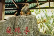南灣猴島位于海南省陵水縣南約14公里的南灣半島,三面環(huán)海,是我國(guó)也是世界上唯一的島嶼型獼猴自然保護(hù)區(qū)。島上除了有熱帶植物近400種,動(dòng)物近百種,原始的自然環(huán)境和2500多只國(guó)家二類保護(hù)動(dòng)物獼猴外,因此人們稱之為“猴島”。它是我國(guó)唯一的島嶼型獼猴自然保護(hù)景區(qū)。二期開發(fā)的海邊項(xiàng)目,浪漫天緣景區(qū)也對(duì)外開放了。 由于景區(qū)在半島上,如果要進(jìn)入猴島,可以選擇乘觀光索道直接抵達(dá)景區(qū),或者選擇坐船抵達(dá)半島的碼頭,然后乘坐景區(qū)的觀光車前往南灣猴島。時(shí)間上大致都在8-10分鐘左右。 進(jìn)入大門,首先看到的將會(huì)是猴島雕塑廣場(chǎng)?吹绞且恢缓镒诱谶_(dá)爾文的《物種起源》捧著人的頭蓋骨在思考。這個(gè)雕塑可是是美國(guó)著名的紅色資本家哈默博士送給前蘇聯(lián)領(lǐng)導(dǎo)人列寧的禮品雕塑的復(fù)制品。 觀賞完雕塑,來(lái)到花果山獼猴游覽區(qū)。由猴隊(duì)長(zhǎng)的帶領(lǐng)下高舉旗幟可愛獼猴的迎賓儀仗隊(duì),還可以看到獼猴的水上樂園——“浴圣池”,可以看到在五星級(jí)游泳池的猴子們或潛水、或游泳、或高樓跳水。 在獼猴雜技表演區(qū)可以看到充滿“人性”的獼猴。