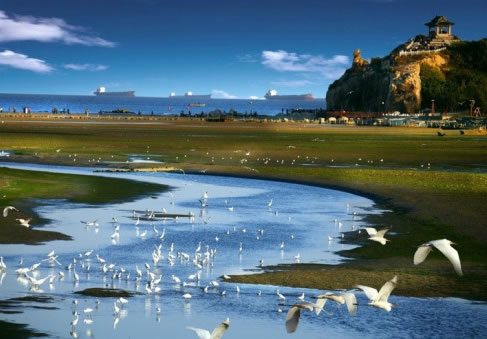 北戴河景區(qū)地處河北省秦皇島市北戴河區(qū)東部沿海,東北至鴿子窩公園,是著名的觀鳥勝地,被譽為"觀鳥的麥加"。這里有6600多公頃森林,50多畝濕地,戴河、恒河等入?谛纬傻哪酁、瀉湖以及滯緩的河道,被國際濕地保護公約命名為"北戴河濕地",并受到國家保護。