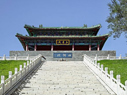 玉皇殿位于后土殿后部偏東的一高臺上,屬明代建筑風(fēng)格,布瓦琉璃剪邊廡殿頂。殿內(nèi)供奉的是道教天帝四御之首的玉皇大帝、眾神之王、三界之首。該殿1975年被毀,1999年在原址上恢復(fù)。