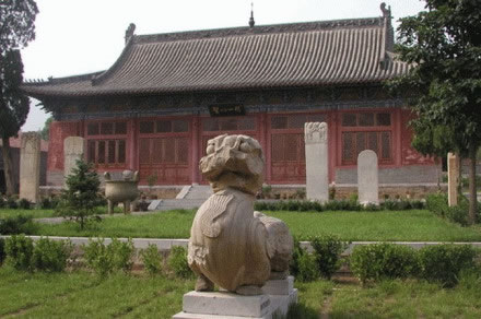 扁鵲廟群形制的特點(diǎn):四周群山環(huán)繞,諸殿坐落其中,廟前河水涓涓,地勢逐漸加高,依山隨勢建筑,軸線對稱分布,景致獨(dú)具特色。
