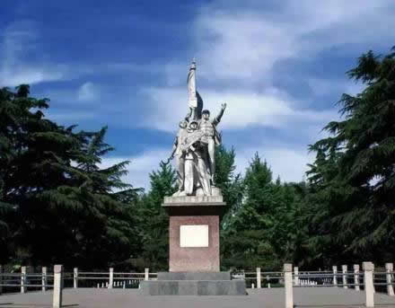 步入大門,迎面而立的是一組高約11米的工農(nóng)兵塑像。該塑像成為邯鄲市繼晉冀魯豫烈士陵園內(nèi)“八路軍”、“民兵”兩組大型人物群雕后,又一組大型雕塑。工農(nóng)兵塑像的后面是筆直的公園大道,中間為如茵的草叢和剪裁整齊的灌木,兩側(cè)為蒼勁挺拔的雪松,一直向西延伸到叢臺(tái)下的環(huán)城湖。