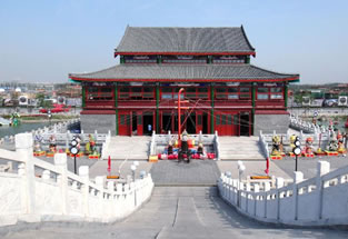 盛樂坊:“盛樂”取自《禮記.月令》,命有司,為民祈祀山川百源,大雩(yu)帝,用盛樂!蚌А,是古代的一種祭禮,說的是古代每到夏季的第二個月,用盛大的舞樂隊伍祭祀天地及山林川澤之神,祈求風(fēng)調(diào)雨順,五谷豐登,具有節(jié)日的氣氛。這個牌坊與對岸的大戲樓遙相輝映。