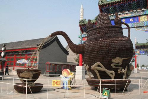 本燈組取材于唐山民俗文化,燈組以茶湯大銅壺為主體形象,古色古韻。茶壺采用特殊材料棕色藥瓶來制作,茶壺倒出茶水時會有流水追光效果,讓觀眾仿佛能夠聞到茶香四溢。