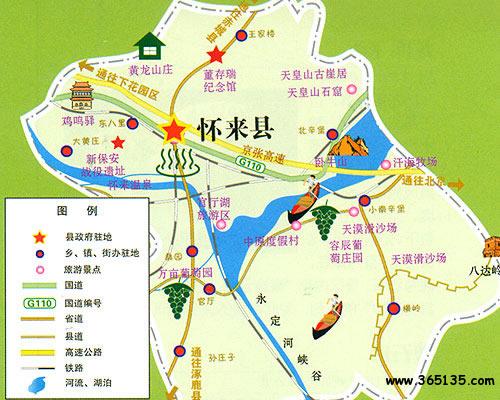 生態(tài)環(huán)境良好:該縣地處北京上風上水,空氣清新,山清水秀,景色怡人,具有良好的生態(tài)環(huán)境。全縣林地面積129.5萬多畝,森林覆蓋率達到30.4%。位于懷來盆地中央的官廳水庫猶如一顆璀璨的明珠鑲嵌其中,環(huán)水庫周圍擁有梨園、海棠園、葡萄園等眾多花果園,臥牛山旅游度假、太師莊休閑度假、永定河峽谷漂流、天漠滑沙旅游多個各具特色的旅游景點、景區(qū)交叉點綴。集葡萄種植、加工、旅游于一體的容辰葡萄莊園,被國家批準為首批農業(yè)旅游示范點。天皇山、白龍?zhí)兜茸匀伙L景區(qū),植被茂盛,風景秀美。黃龍山莊花香幽遠,生態(tài)觀光獨具特色。