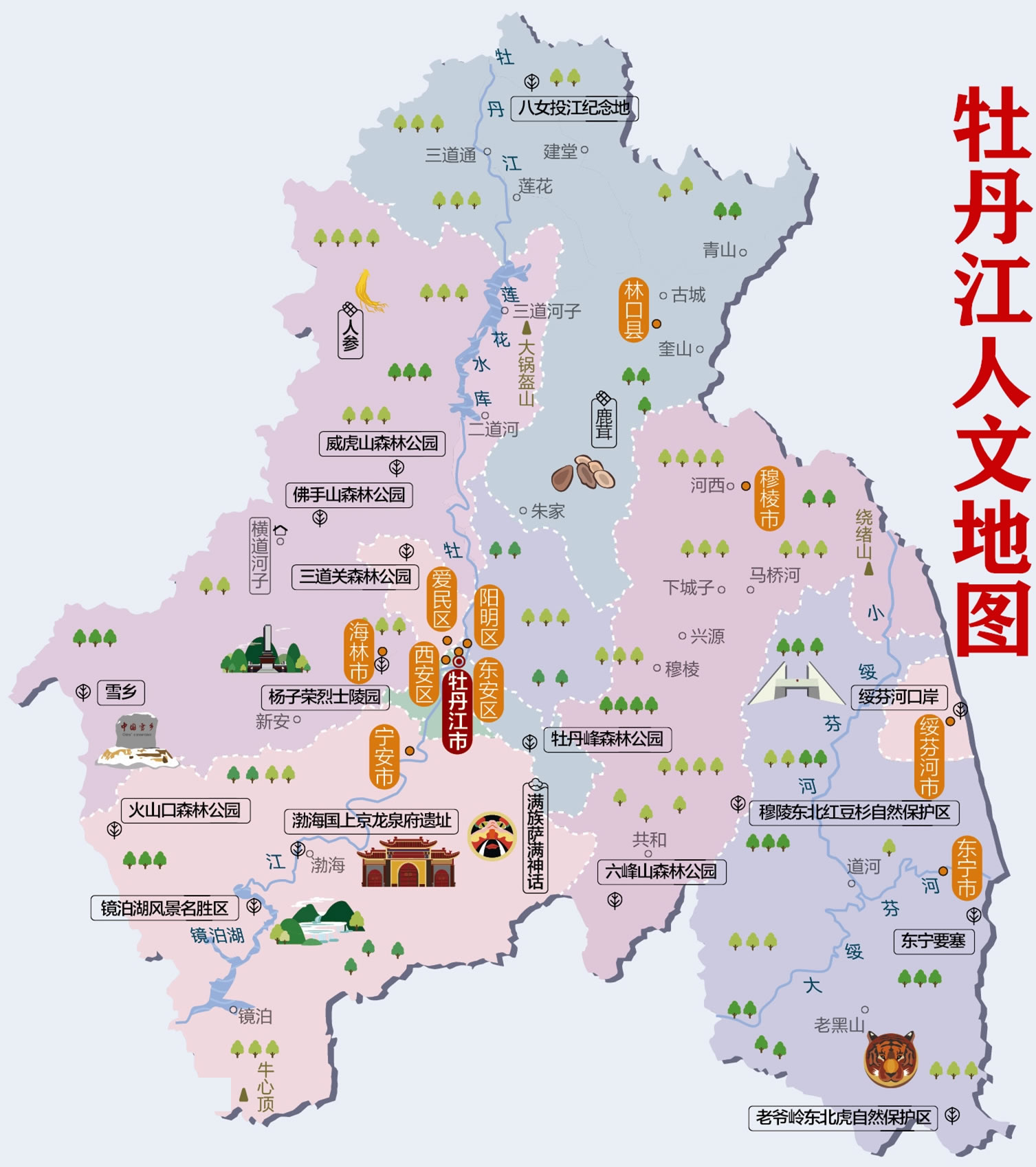 牡丹江市位于黑龍江省東南部,素有“塞北江南”之稱。風(fēng)光旖旎,景色天成。 世界第二大火山熔巖堰塞湖、世界地質(zhì)公園——鏡泊湖風(fēng)景秀麗。國家級森林公園地下森林是世界著名的“火山口”原始森林。中國北方地區(qū)最大的人工湖——蓮花湖山清水秀,森林虎園驚心動魄,冰雪旅游獨具特色,跨國旅游風(fēng)情迥然……
