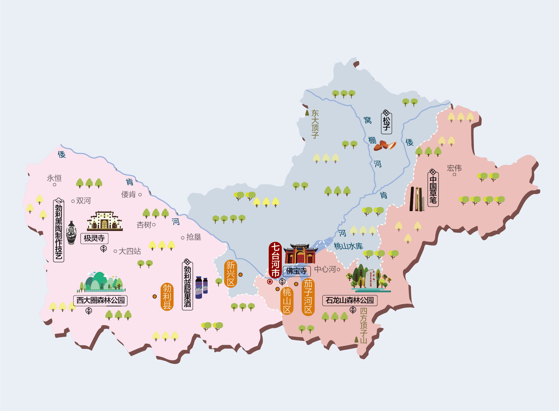 七臺河市轄3個市轄區(qū)、1個縣: