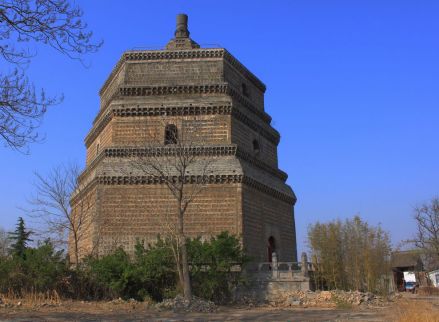 繁塔位于開封古城東南隅,建于北宋開寶七年。繁塔為六角九層空心樓閣式、仿木結構的磚塔,原高80米,明永樂年間,將三層以上拆除,后在三層上建六層尖頂,形成了現(xiàn)今下粗上尖的塔姿。繁塔是研究我國建筑、美術和音樂的寶貴資料。
