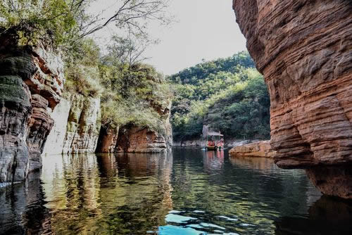 龍?zhí)洞髰{谷景區(qū)是王屋山——黛眉山世界地質(zhì)公園的核心景區(qū),是一條以典型的紅巖嶂谷群地質(zhì)地貌景觀為主的峽谷景區(qū)。谷內(nèi)關(guān)峽相望,潭瀑聯(lián)珠,壁立萬(wàn)仞,峽秀谷幽,經(jīng)過(guò)十二億年的地質(zhì)沉積和260萬(wàn)年的水流切割旋蝕所形成的高峽甕谷、山崩地裂奇觀,堪稱世界一絕,人間少有,享有“中國(guó)嶂谷第一峽”、“古海洋天然博物館”、“峽谷絕品”和“黃河水畫(huà)廊”等美名。